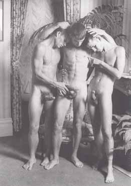 What a difference those years made in photography. Not only do we have three hardons instead of one, the lads are posed in an obvious state of sexual interest. The background coupled with black and white photography would make the picture seem from the end of the 19th Century instead of the end of the 20th Century. I doubt one could find such a photo in the Victorian Era.